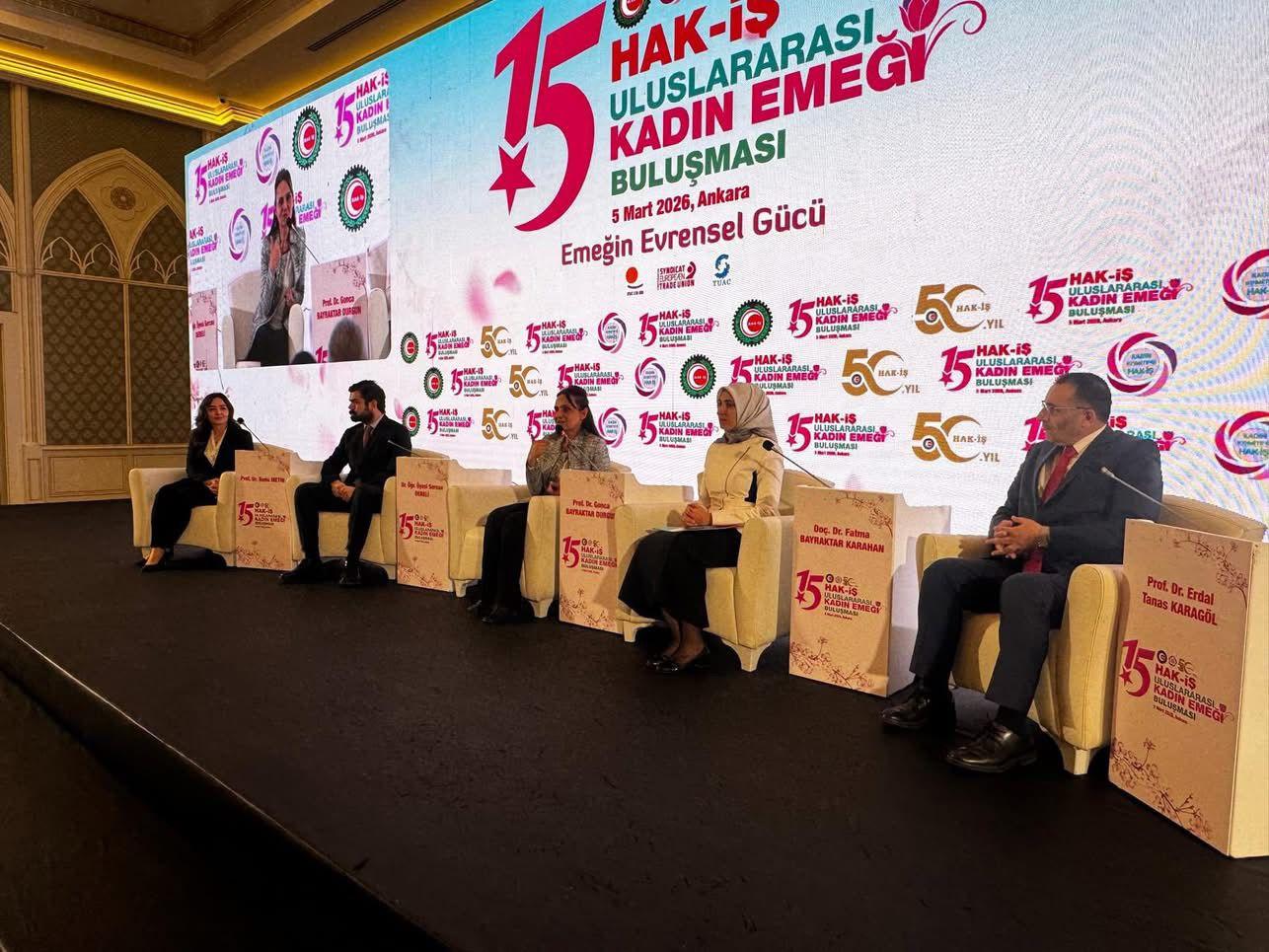 Konfederasyonumuz HAK-İŞ tarafından düzenlenen 15. Uluslararası Kadın Emeği Buluşması, “HAK-İŞ’li Kadınlar Türkiye Saha Araştırması” temasıyla 5 Mart 2026 tarihinde Ankara’da gerçekleştirildi. Programda, “HAK-İŞ Türkiye Kadın Buluşmaları” sürecinin önemli çıktılarından biri olan Türkiye Örgütlü Kadın Saha Araştırması sonuçları kamuoyu ile paylaşıldı.