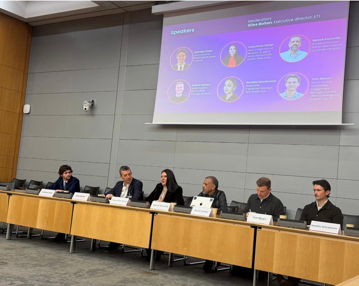 Genel Başkanımız Rafi AY, Paris’te bulunduğu süre boyunca uluslararası markalarla ve uluslararası sendikalarla ikili görüşmelerde bulundu. Forum süresince gerçekleştirilen paydaş oturumlarında yaşama ücreti, ücret şeffaflığı, sosyal diyalog ve insan hakları durum tespiti (HRDD) başlıklarında yürütülen tartışmalara sendikamız aktif katkı sundu. Öz İplik İş Sendikası, sahadan gelen deneyimleri ve sendikal bakış açısını uluslararası platforma taşıyarak, işçilerin gerçek çalışma koşullarının politika ve veri tartışmalarında görünür kılınmasının önemine dikkat çekti.
